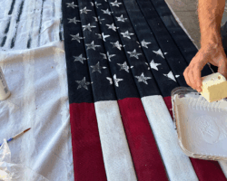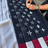 Color was also an issue. Sure, the American flag is red, white and blue, but which red? Which blue? Luckily, Home Depot sells flags. I grabbed one out of a bin and asked the paint guy to sample the colors directly from the flag. That way, I knew I’d have authentic colors in the final product.