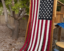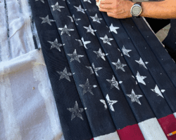 Old Glory is comprised of 13 stripes, alternating red and white, with the “union” (star field) going across seven of those. The trick is to make the union the correct width and length to accommodate the stars, which sit in nine alternating rows of six and five. It’s more complicated than you’d think.