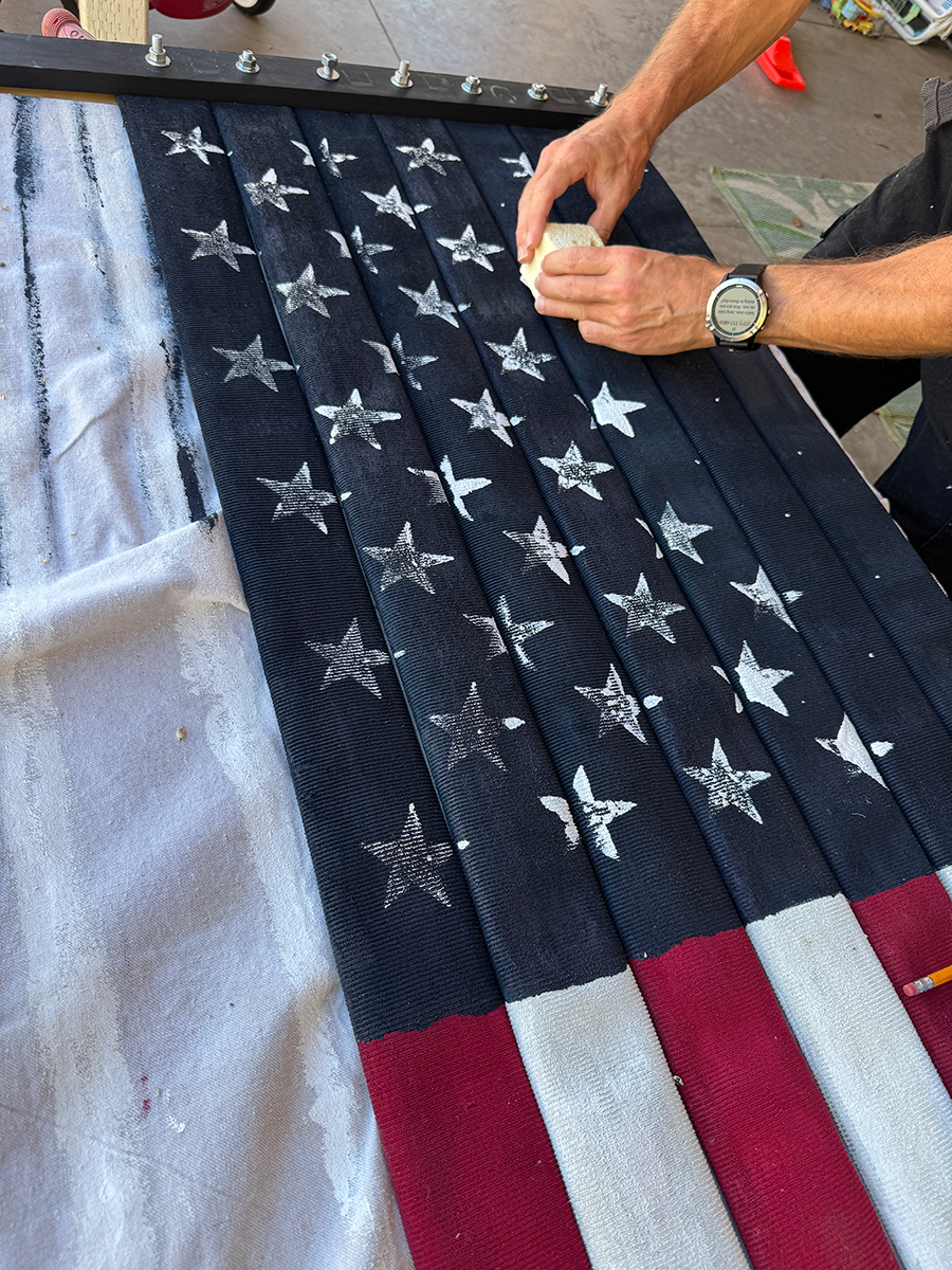 Color was also an issue. Sure, the American flag is red, white and blue, but which red? Which blue? Luckily, Home Depot sells flags. I grabbed one out of a bin and asked the paint guy to sample the colors directly from the flag. That way, I knew I’d have authentic colors in the final product.