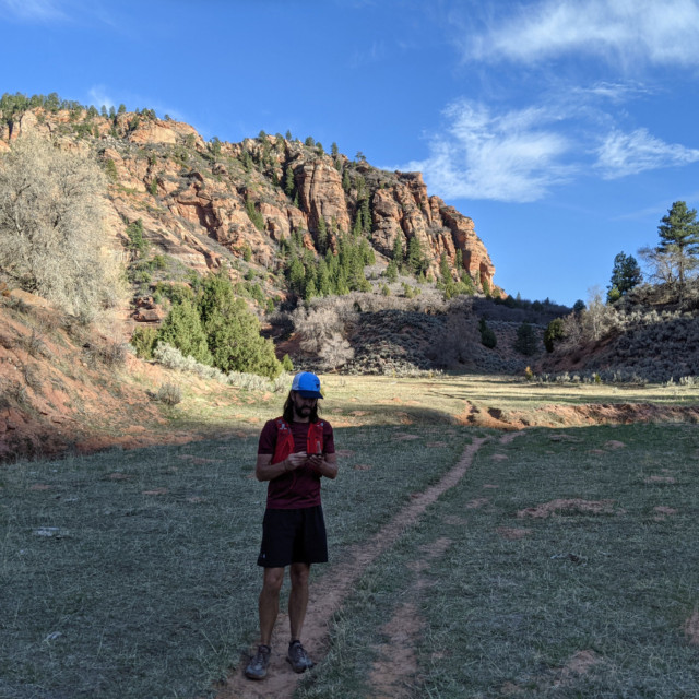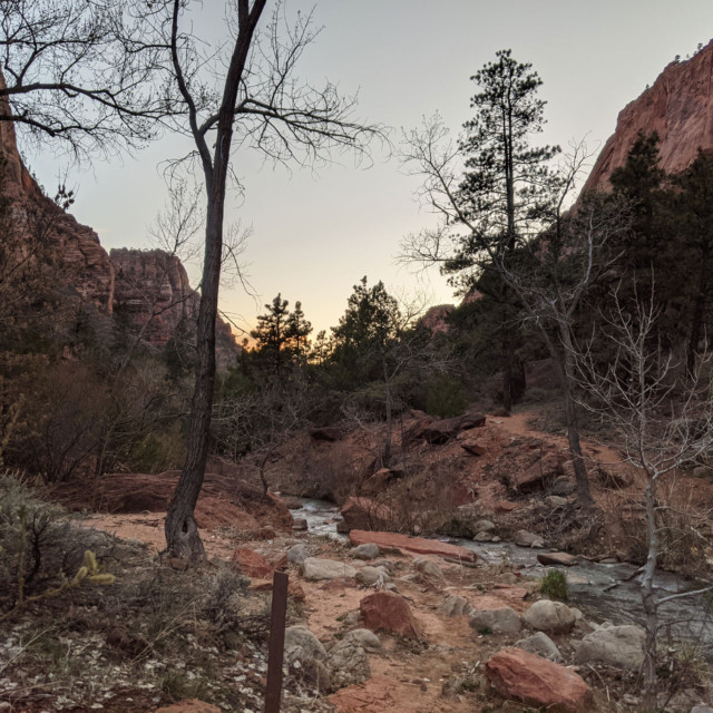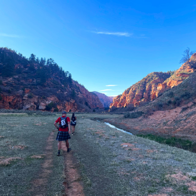 The last section of trail is the La Verkin Creek Trail, which runs about 6.5 miles from Kolob Arch to the Lee Pass Trailhead. I’ve run it before, though only in the daylight. When we finally lost the rest of nautical dusk, we busted out our headlamps and forged ahead as quickly as we could. I found myself telling stories and making jokes, trying to help keep my companions engaged and moving forward.